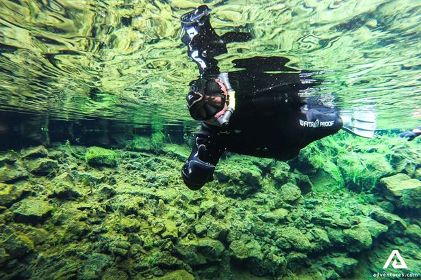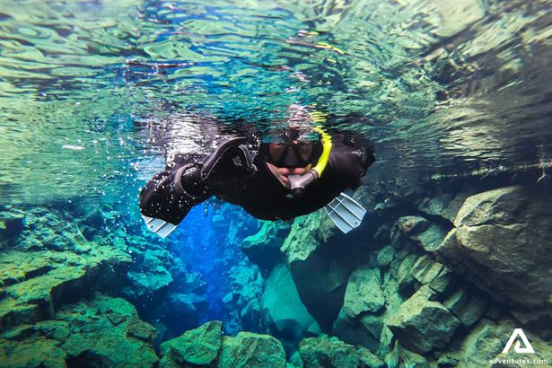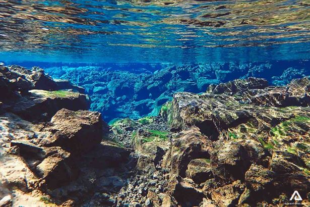 Silfra is also the only place in the world, where you can swim between two continents: those of North America and Europe, which are actually drifting apart (at a rate of 2cm a year)! This combined with the incredible visibility makes Silfra and experience that you won’t want to miss! Our ‘into the blue tour’ offers you the chance to take a journey into an alien world: both beautiful and captivating.