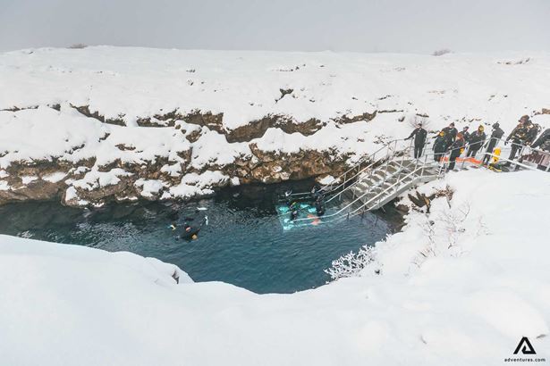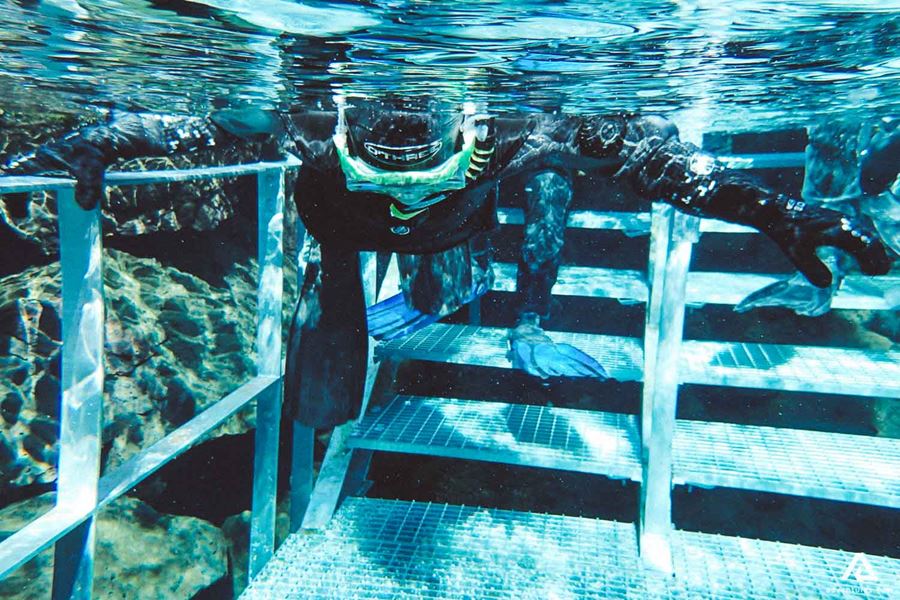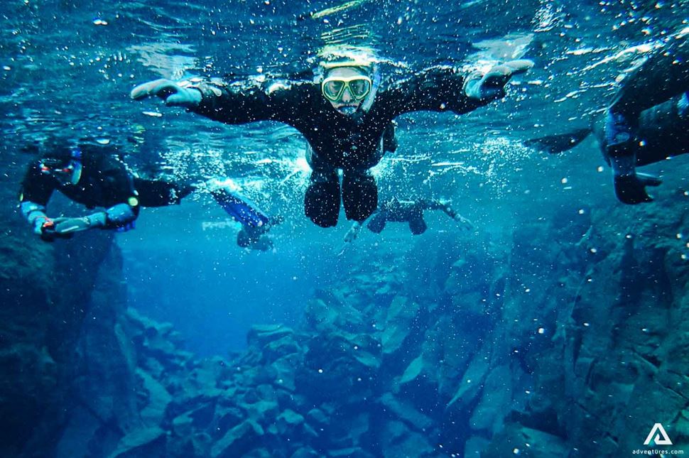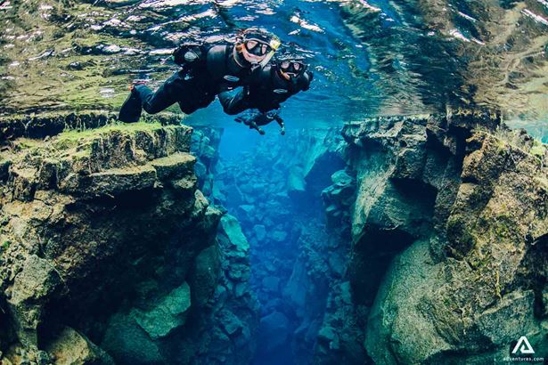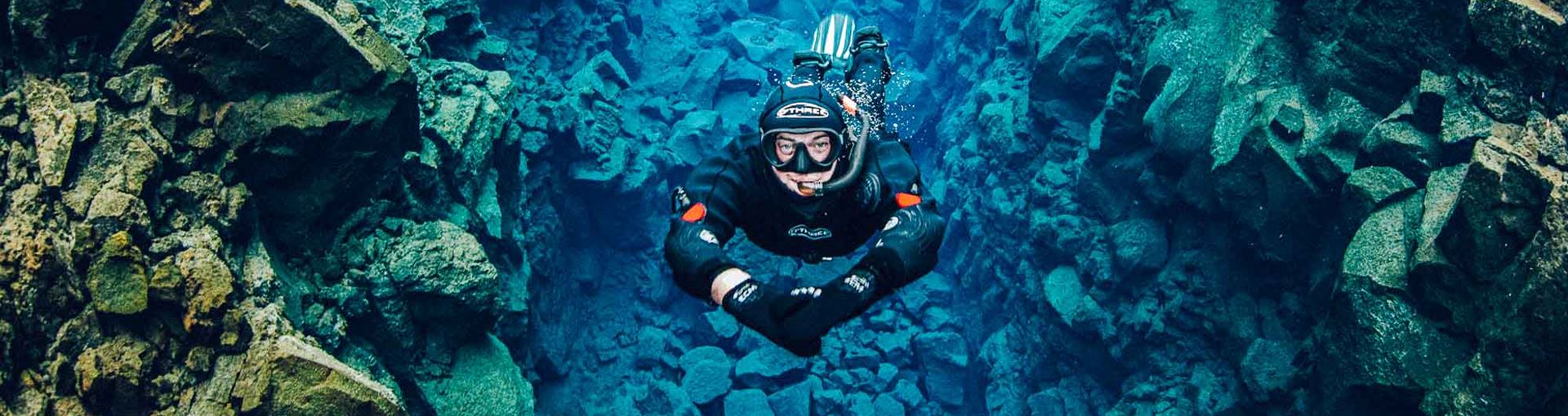 You will experience a truly breath-taking experience, as you drift peacefully through the electric blue waters of the Silfra Fissure. The water is astoundingly clear, because it is glacial water from the Langjökull Glacier, meaning that the temperature is about 2-4 degrees. But don’t worry, we provide fully insulated dry-suits and there will be a certified expert with you at all times. The water in Silfra is as pure as water can get: meaning that you can drink it at any time during the dive!