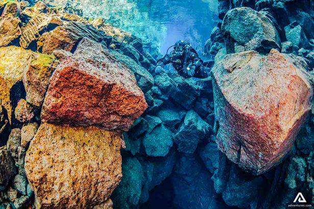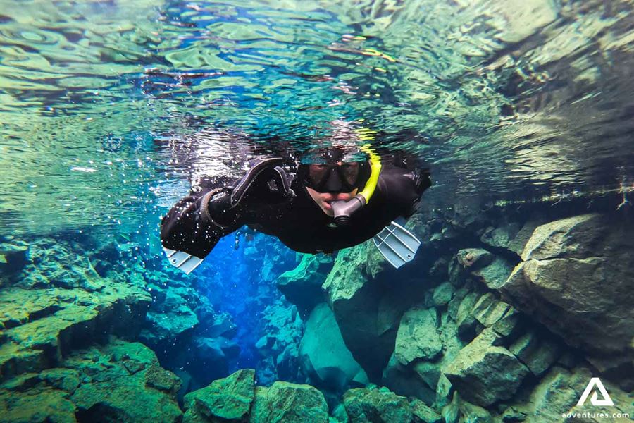 Die Silfra-Spalte ist ein Riss zwischen den beiden tektonischen Platten Eurasiens und Nordamerikas, was bedeutet, dass Sie zwischen den Kontinenten schwimmen werden!