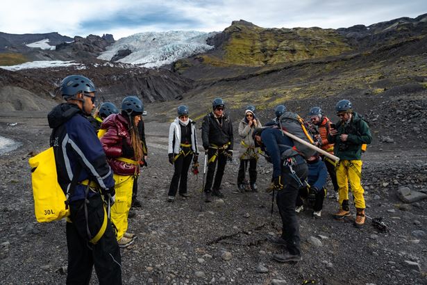 Nach der Ankunft am Falljökull gibt Ihnen unser freundlicher und zertifizierter Guide eine Sicherheitseinweisung und eine Einweisung in die Ausrüstung, die wir heute benutzen werden. Wir stellen Ihnen die gesamte Ausrüstung, die Sie brauchen werden zur Verfügung: Eisaxt, Eiskrallen, Helme und Sicherheitsgurte. Ihre Sicherheit hat bei uns höchste Priorität und unsere freundlichen Experten sorgen dafür, dass Sie immer sicher auf dem Eis sind.