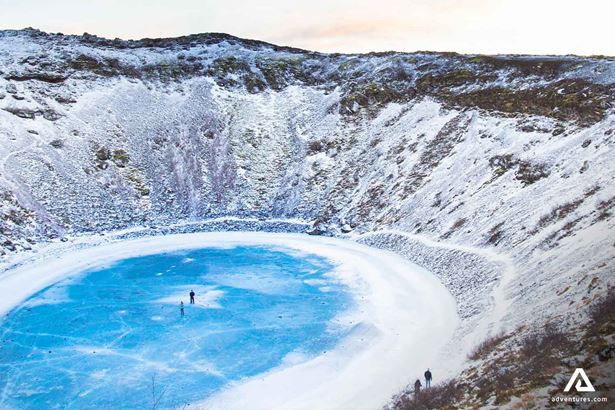 Der 3000 Jahre alte Kerid-Kratersee und seine Umgebung sehen aus wie aus einem Film. Von oben betrachtet erwartet Sie das „Auge der Welt“. Der 55 Meter tiefe See ist für sein türkisfarbenes Wasser bekannt und ist von roten Vulkangesteinen und leuchtendem Grün umgeben.