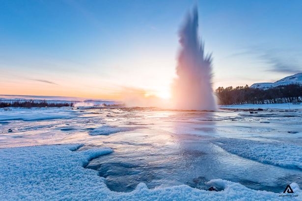 Vom Thingvellit Nationalpark fahren wir weiter zum bekannten geothermalen Geysirgebiet. Hier werden wir Geysir zu sehen bekommen, der bekannteste Geysir in Island. Außerdem werden wir seinen hoch aktiven Nachbar Strokkur beobachten, der ca. alle 7 Minuten ausbricht und dabei sein heißes Wasser bis zu 40 m hoch in die Luft sprüht.