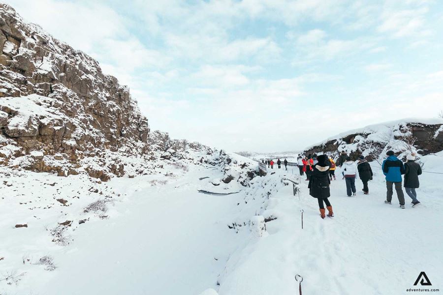 Unser 1. Stopp am Goldenen Kreis ist der Nationalpark Thingvellir, welcher bedeutungsvoll ist in Bezug auf Islands Geschichte, da hier in 930 Islands 1. Parlament gegründet wurde (Althingi). Als sein Millennium gefeiert wurde, wurde gleichzeitig Thingvellir als 1. Nationalpark Islands ausgezeichnet. Bei der Almannagja Schlucht kann man sehen, wie die nord-amerikanische und eurasische Kontinentalplatten auseinander treiben mit ungefähr 1,5 cm pro Jahr. Danach bekommen wir den Öxarárfoss zu sehen, der zum UNESCO Weltkulturerbe gehört, genau wie der Nationalpark Thingvellir.