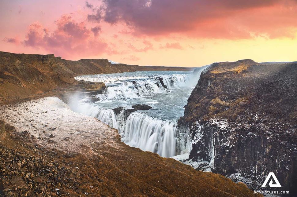 Nach unserem Lunch fahren wir zum goldenen Wasserfall Gullfoss, der für viele Besucher der Höhepunkt der Tour ist. Diese Perle der Natur fängt die Essenz und Kraft der isländischen Natur ein und ist Teil des Flusses Hvítá. Gullfoss besitzt eine enorme Kraft, die Sie aus 1. Hand erfahren können, da es möglich ist ganz nah dran zu gehen bis Sie den feinen Sprühregen aus Gletscherwasser auf Ihren Gesichtern spüren können (aber gehen Sie auf keinen Fall zu nah dran!).