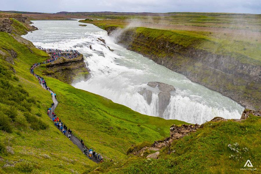 Weiter geht es zu dem majestätischen Wasserfall Gullfoss (Goldene Fälle), der seinen Namen daher hat, dass sein Wasser an einem sonnigen Tag einen gold-braunen Farbton annimmt, wenn es sich in den Fluss Hvita (Weißer Fluss) hinunterstürzt. Wenn Sie Glück haben, werden Sie einen spektakulären Regenbogen über der Schlucht sehen: Dies bietet eine grandiose Fotomöglichkeit. Gullfoss, Thingvellir und die heißen Quellen von Geyser sind alles Dinge, die ein Islandtourist gesehen haben muss. Auf dieser Tour können Sie jeden einzelnen dieser Punkte an nur einem Tag von deiner To-Do-Liste streichen!