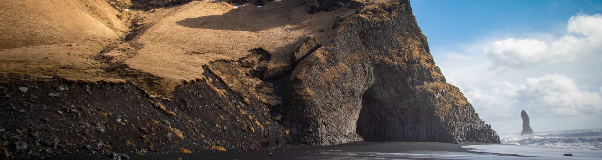 Wenn wir weiter die Küste entlangfahren, erreichen wir Reynisfjara, Islands berühmten schwarzen Sandstrand. Sie werden hoch aufragende Basaltsäulen, Höhlen und die mystischen Basaltpfeiler Reynisdrangar sehen, die aus den Wellen ragen. Reynisfjara ist ein Traum für jeden Fotografen und ein absolutes Muss an der Südküste.