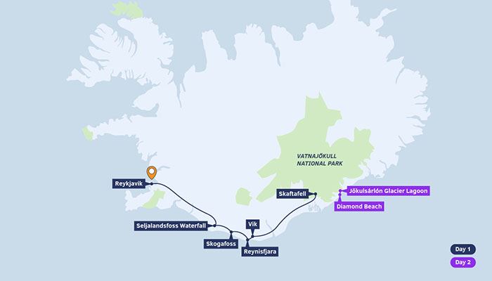 Nach dem Frühstück fahren wir zum Vatnajökull-Nationalpark, wo sich Europas größte Eiskappe mit ihren zahlreichen Ausläufern über Tausende von Kilometern erstreckt. Unser erstes Ziel ist die Gletscherlagune Jökulsárlón, ein Ort, an dem riesige Eisber...)