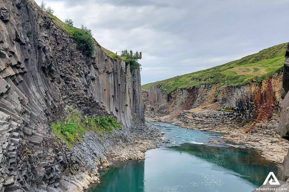 Die fabelhaften Highlights von Nordisland erwarten Sie heute, während wir von Egilsstaðir nach Akureyri fahren. Natürlich machen wir zwischendurch Halt, um Ihnen einige fantastische Orte auf dem Weg zu zeigen! Nachdem wir Egilsstaðir hinter uns gelassen haben, fahren wir durch ein Hochlandgebiet, wo die Landschaft karg und außerirdisch ist. Zuerst besuchen wir den Stuðlagil Canyon, eine der bezauberndsten Basaltfelsformationen der Welt.