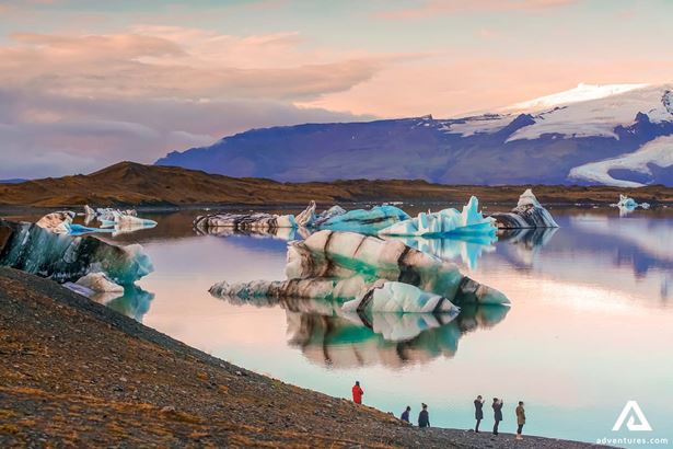 Am Ende der Gletscherwanderung erwartet Sie schon der warme Minibus. Es gibt noch mehr Gletscherwunder zu bestaunen an diesem Tag, als Nächstes die treibenden Eisberge in der Jökulsarlon Gletscherlagune. Sie können diese unglaubliche Landschaft bereits entdecken, bevor Sie überhaupt den Parkplatz erreichen. Sie könnten eventuell ein Deja vu hier bekommen! Die Lagune wurde als Drehort für James Bond Filme, Dokumentationen und andere Filme genutzt. Die riesige Lagune begann sich zu formen, als der Breiðamerkurjökull Gletscher sich immer weiter zurückzog seit 1934. Wirklich große und unglaublich geformte Eisberge brechen vom Gletscher ab in wunderschönen Blautönen und manchmal sogar mit Streifen aus Vulkanasche. Manchmal kann man sogar beobachten, wie diese natürlichen Eisformationen umfallen oder sogar auseinanderbrechen, ein einmaliges Erlebnis, und eine tolle Möglichkeit für Fotos und Videos - Sie können es nicht vorhersehen aber, wenn es passiert, halten Sie es fest! Die Aussichten in Jökulsarlon sind atemberaubend.