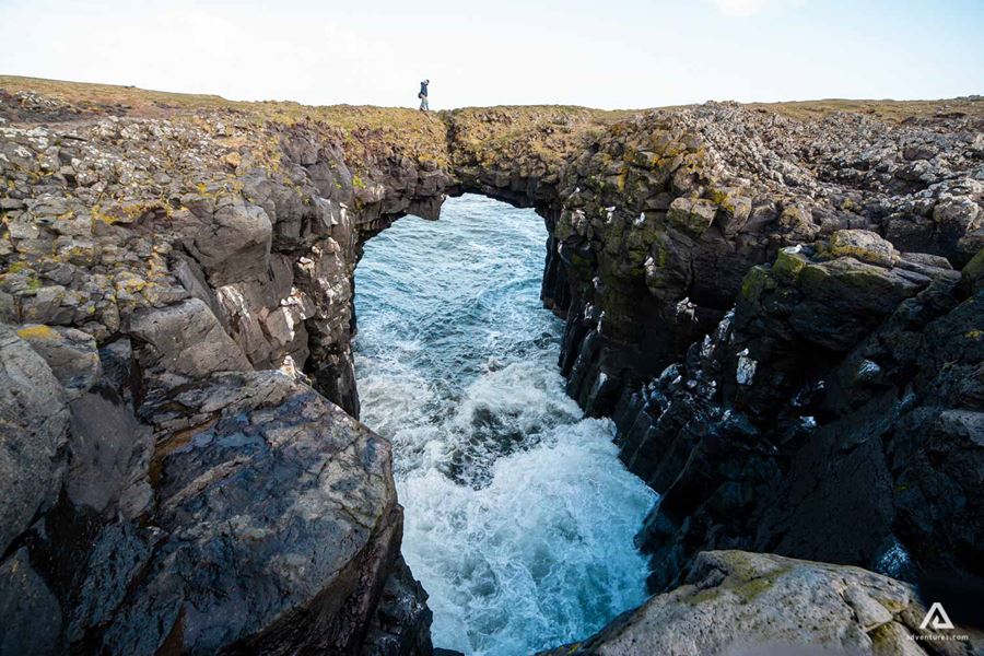Wir halten im traditionellen und charmanten Fischerdorf Arnarstapi, hier haben Sie genug Zeit spazieren zu gehen und die wilde und fantastische Küste zu entdecken. Wir besuchen Hellnar und Arnarstapi, wirklich malerische Dörfer und genießen die sensationelle Landschaft, die uns hier umgibt. Wir werden hier auch zu Mittag essen (nicht inklsuive). Weiter geht es entlang der Küste zum wunderschönen schwarzen Steinstrand Djúpalónssandur. Wir machen eine kurze Wanderung runter zum Strand und beobachten, wie die weißen Wellen auf den Strand treffen. Diese glarren Steine sind bekannt als Djúpalóns Perlen. Die einmalig geformten Klippen am Strand bieten eine tolle Atmosphäre und manchmal sogar Gefahr. Sie können die Überreste von britischen Schiffswracks sehen, die hier gestrandet sind. Außerdem liegen hier die ‘heb Steine’, die lokalen Fischer aus vergangenen Zeiten bewiesen hier ihre Stärke. Diese Steine anzuheben ist nicht einfach, werden Sie es versuchen?