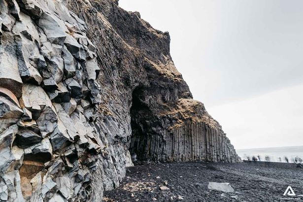 Reynisfjara ist ein schwarzer Sandstrand mit Blick auf den Atlantischen Ozean. Auf der einen Seite ragt eine Ansammlung von Basaltsäulen empor, wie die Röhren einer gigantischen Steinorgel, die in den Hügeln vergraben ist. Direkt vor der Küste erheben sich die dramatischen Reynisdrangar-Basaltsäulen wie mächtige Türme aus dem Meer.