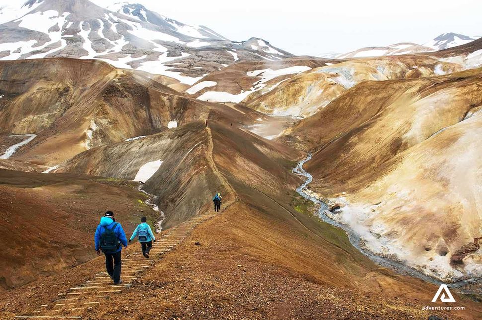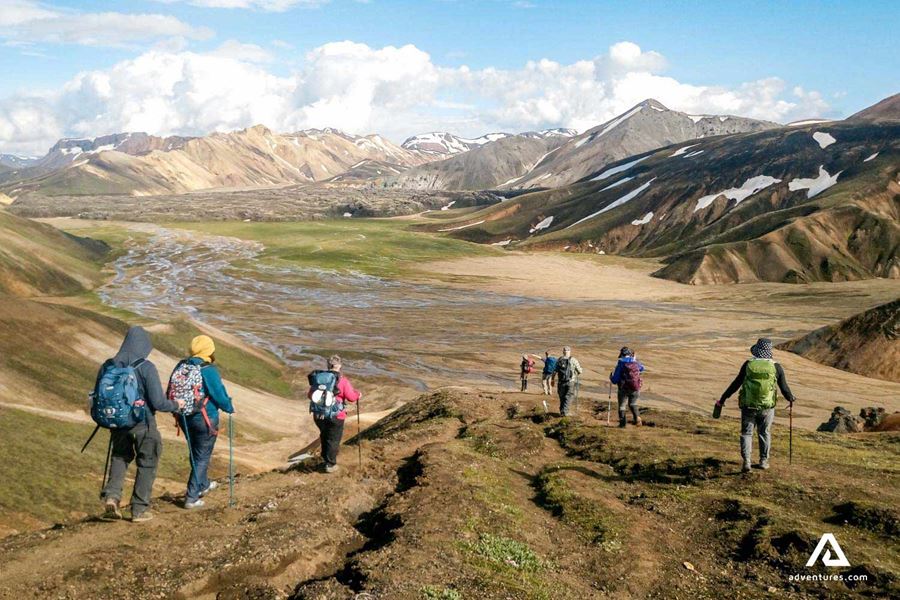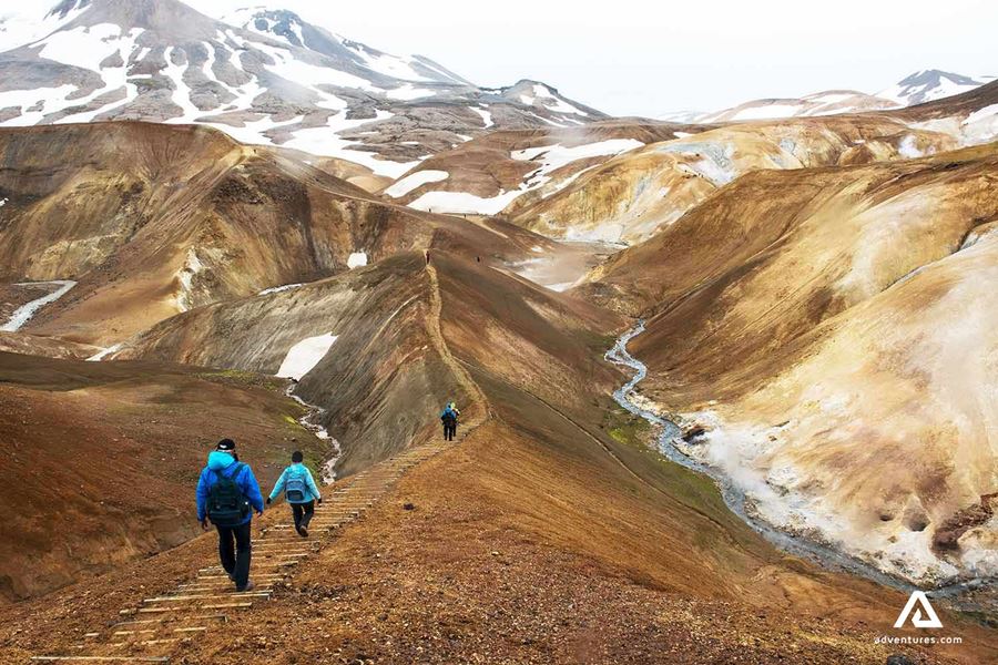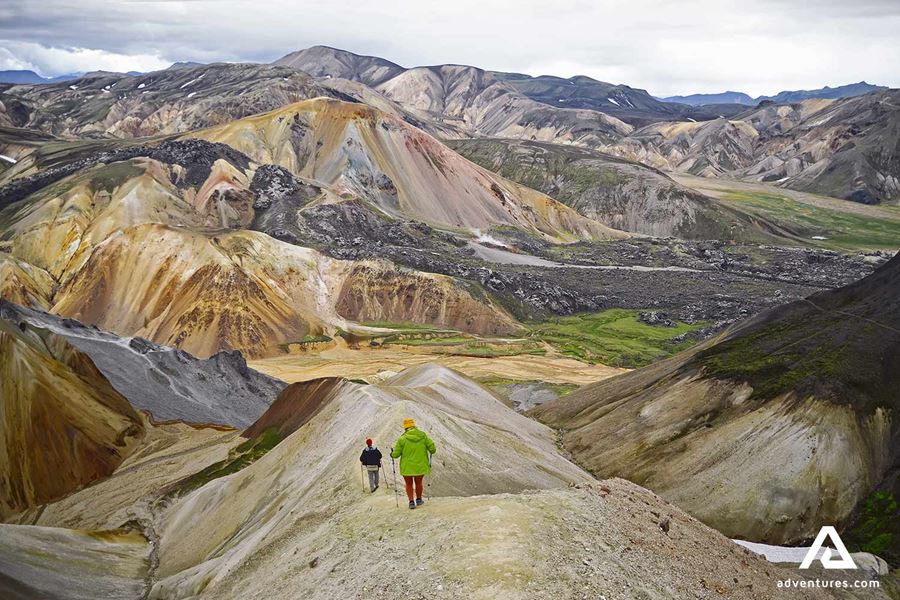 Unsere Wanderung beginnt in Landmannalaugar, wo wir an bunten Bergen und heißen Quellen vorbei wandern. Der Weg führt uns durch Lavafelder. Von da geht es weiter zum Berg Brennisteinsalda, der bekannt ist für seine Farben. Wir laufen vorbei an der wunderschönen Quelle Storihver, bevor wir in die Lavawüste Hrafntinnusker gehen. Storihver ist einer von den wenigen grünen Orten, die wir an diesem Tag sehen werden.