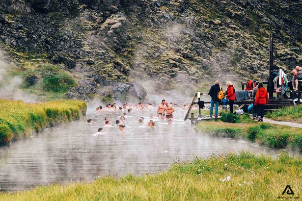 Pour ceux qui ont choisi d’être pris en charge à Reykjavik, nous nous retrouverons tous ensemble avant de prendre la route panoramique jusqu'à Landmannalaugar. Une fois arrivés, votre guide sympathique vous donnera toutes les informations de sécurité nécessaires et vous racontera quelques faits supplémentaires sur cette incroyable d’une beauté naturelle envoûtante. Ensuite, nous commencerons la randonnée de 4 heures, d'environ 8-10 km de distance, qui offre une vue imprenable tout du long. Cette randonnée traverse le champ de lave noir de Laugahraun, descend à travers le somptueux canyon de Vondugil puis grimpe le mont Brennisteinsalda dont le pic coloré est typique de la région. Chaque endroit offre des vues incroyables et de nombreuses opportunités pour prendre des photos incroyables. Ensuite, nous commencerons notre descente: nous marcherons à travers la gorge vert émeraude de Graenagil (gorge verte en islandais) célèbre pour ses roches vertes de rhyolite et sa végétation verdoyante. Nous visiterons ensuite puis nous plongerons dans la légendaire piscine thermale de Landmannalaugar. Tout cela est fait dans un décor absolument magnifique, d’une beauté naturelle majestueuse: c'est ineffable. Alors réservez cette incroyable expérience de randonnée dès aujourd'hui: nous vous promettons que vous ne le regretterez pas!
