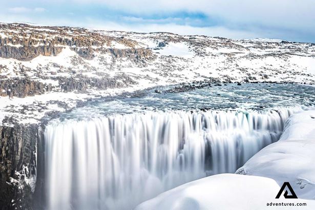 La magnifique cascade de Dettifoss sera la première étape du jour. C'est la cascade la plus volumineuse d'Europe. Elle s'étend sur 100 mètres de largeur et plonge depuis 45 mètres de haut dans le canyon. Le flux génère une brume considérable qui rend la vallée mystérieuse en remontant de la falaise sèche. Cette force pure fait de l’ombre à bien de nombreuses cascades dans le monde.