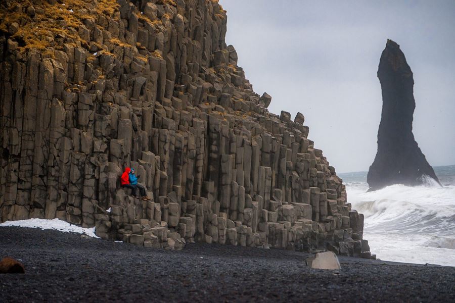 Our next destination is the dramatic black sand beach Reynisfjara. Powerful waves have hammered the shore and basalt cliffs giving shape to some of the most famous natural wonders of the area. Cliffs with caves and the Reynisdrangar sea stacks are just off the shore. The long and stark black sand beach reachs to the 120 m (400 ft) high Dyraholaey promontory, the southernmost tip of Iceland. The cliffs in the area are home to a rich variety of birdlife, among other species you might see fulmar, guillemot, razorbill, gannet and various types of seagulls - during the summer you will also see a large puffin colony.