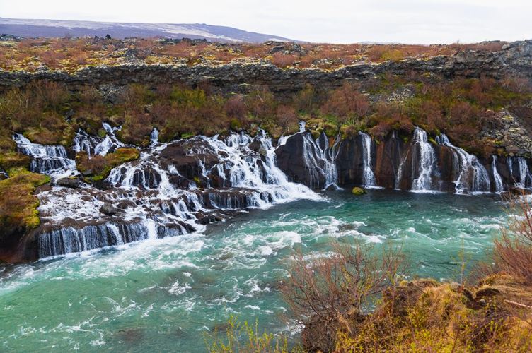 Afterward, we’ll chase waterfalls! At Barnafoss, your guide will share the dramatic local tale that gave these rapids their name. Nearby, the elegant Hraunfossar pours in thousands of threads from beneath a lava field, flowing with glacier water from Langjökull, Iceland’s second-largest glacier.