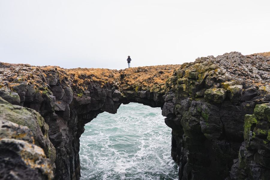 We usually stop for lunch in the scenic village of Hellnar before continuing to explore more coastal gems, like Arnarstapi’s dramatic sea cliffs and stone archways.