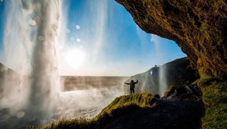 After breakfast, we leave Reykjavík and head southeast along the scenic South Coast, passing farmlands, volcanoes, and glacier views. Our first stop is the stunning Seljalandsfoss waterfall. Dropping 60 meters (197 feet), it’s one of the few waterfalls in the world you can walk behind—just be ready for the spray!