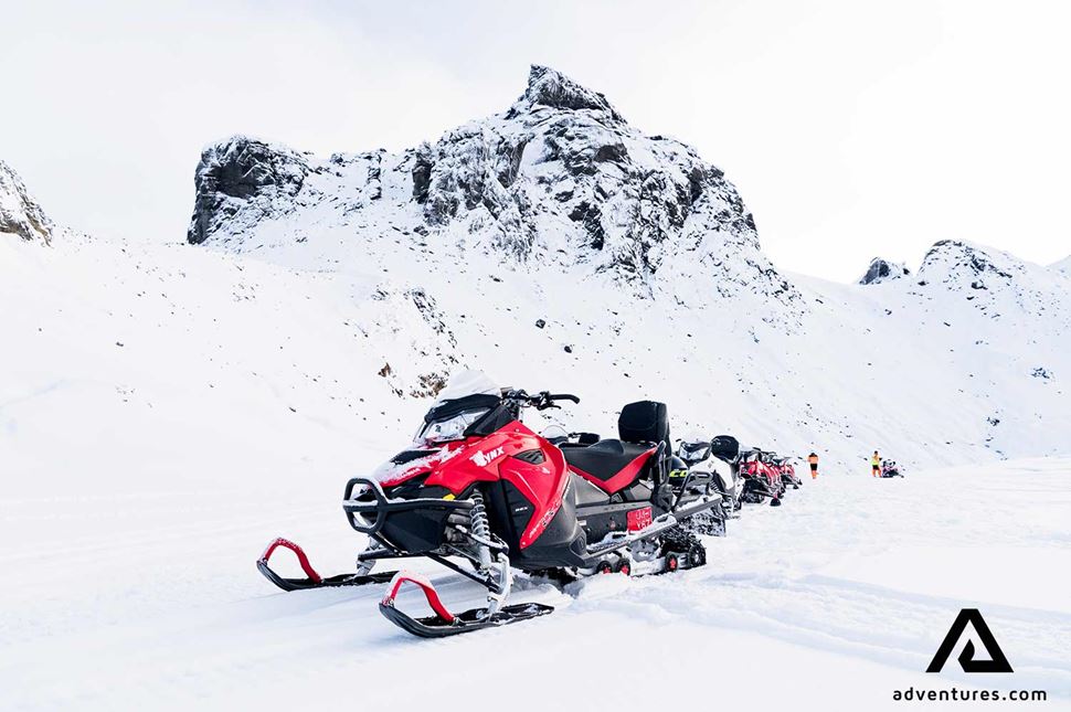 Snowmobiles - also known as motor sleds, motor sledges, or snow machines - are defined as all-terrain vehicles (ATVs). They are specially designed for traveling on ice and snow. Instead of wheels, they have rubber tracks and are steered with skis. The machines are powered by four-stroke engines and can reach up to 150 km/h (93 mph). The normal - and safe - maximum speed on to reach on a glacier is 70 km/h (43 mph). Believe us, that is more than enough.