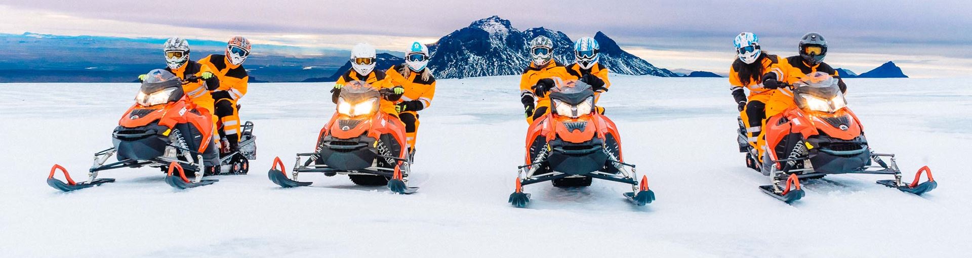 The average snowmobile tour takes anywhere from 2-5 hours, depending on whether we pick you up in Reykjavik or you’re able to meet us at the base camp. If you're combining it with one of our other fantastic attractions, we offer tours that range from 4 hours to a jam-packed 16-hour thrill ride.