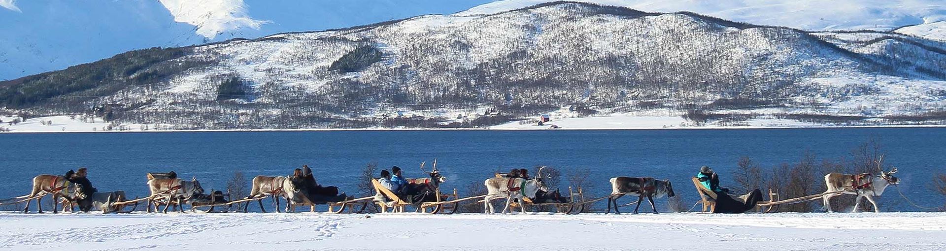 Enjoy a 10 to 15-minute sleigh ride as the reindeer guide you around the valley and along the coast. Afterwards, you will have the opportunity to feed 300 of these magnificent animals before entering the gamme for a hot traditional meal cooked over the fire. Finish the day by gathering around the fire to listen to Sami history, stories and joiking (songs)