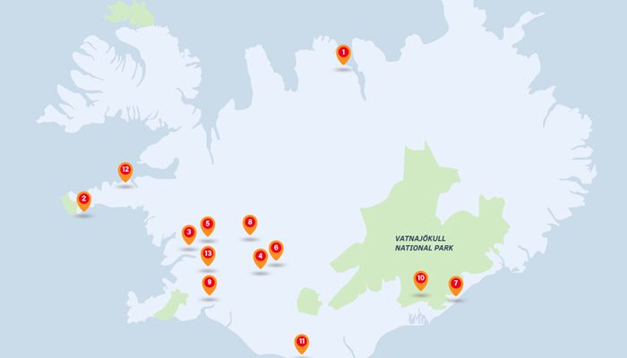 The map below displays all of our meeting points in Iceland. Below the map you will find a list of noteworthy locations with more detailed information.