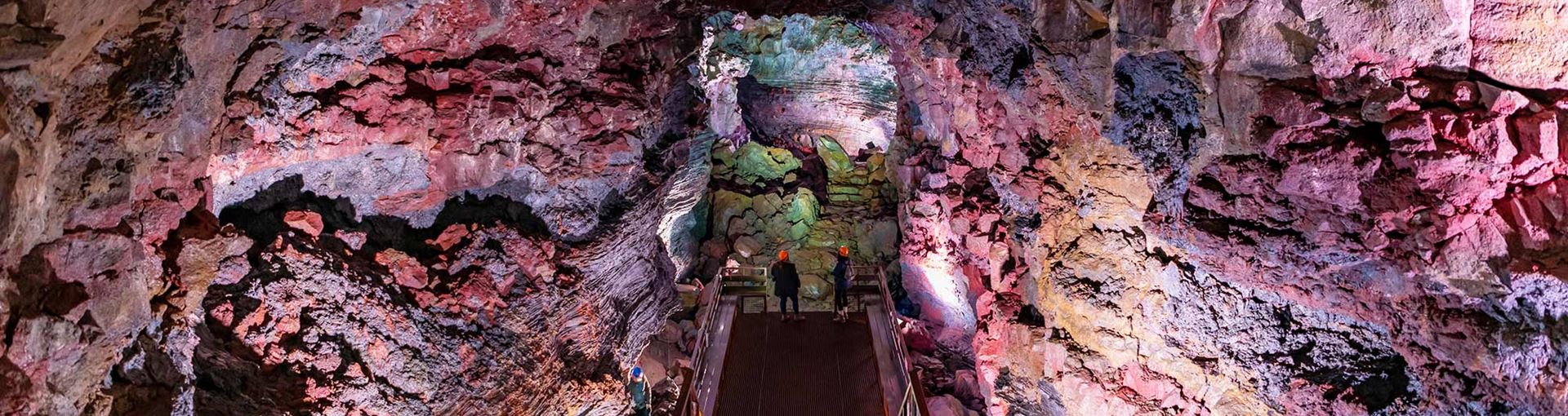 Spenastofuhellir lava tube is around 200 metres long and it has some fantastic lava flow formations such as stalactites. Volundarhusid Cave (e. The Labyrinth) is only 100 metres south of Spenastofuhellir lava tube. Volundarhusid lava tube is also 200 metres long and has 6 entrances and it forks in every imaginable way just like a labyrinth. It is a colourful lava tube with great lava formations that are very pleasing to the eye.
