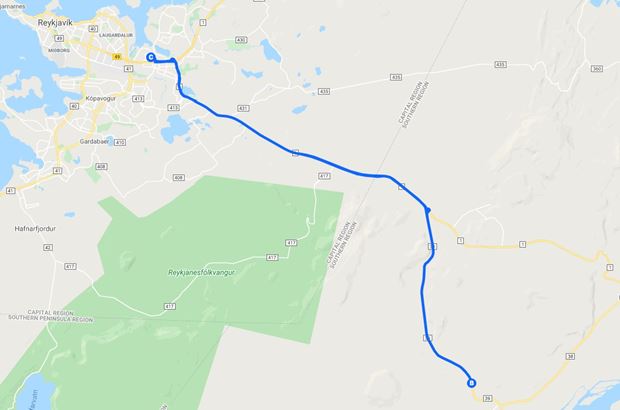 The tunnel is located less than 30 minutes drive (approximately 30 km) from Reykjavík, Iceland and accessible by all vehicles. Driving from Reykjavík east on Route 1 and drive for about 18 km. Turn right onto Route 39 (Þorlákshöfn) and drive for another 12 km. The parking area will be on your left-hand side. Click here for a Google Map. The GPS coordinates are: N.63º 56.407 / W. 021º 23.742.
