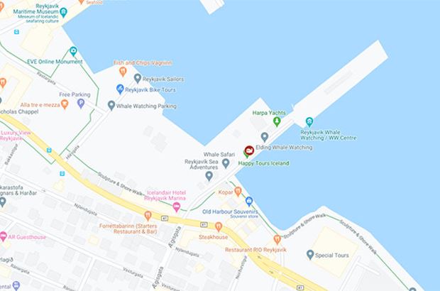 The meeting location is at the Old Harbor in the downtown area, at Special Tours Ticket Office, located at Ægisgarður 13, 101 Reykjavík. While we sail out to the open sea, you'll get a short introduction.