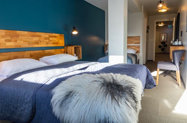You’ll have free access to the museum exhibitions during your stay. When you arrive, you’ll cross an old wooden bridge to your historic accommodation. Meals are made fresh in an open kitchen, using local ingredients. And after exploring, get ready to soak like a true Viking in the hot spring bathhouse, built with stones just like the ones our ancestors used.
