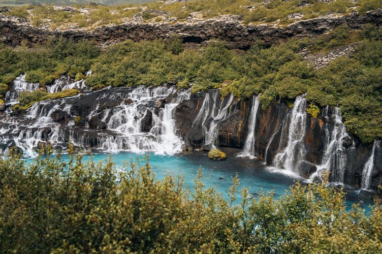 Next, we’ll visit the unique Hraunfossar, or “Lava Falls,” where countless streams flow directly from the ground—a rare phenomenon for a waterfall. The water emerges over a stretch of about 0.55 miles (900 meters), creating a stunning and beloved natural sight for all who visit.