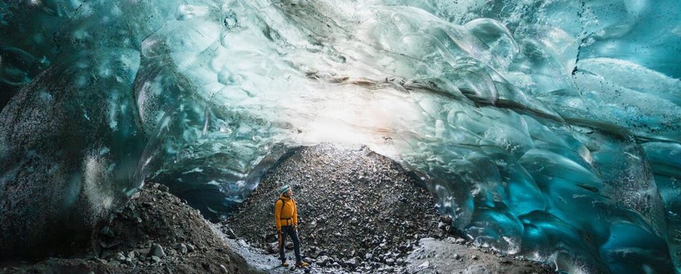From the lagoon, you’ll board a modified Super Jeep and head out to Breiðamerkurjökull, one of Vatnajökull’s outlet glaciers. After a short walk, you’ll reach the entrance of a naturally formed ice cave and follow your local glacier guide inside.