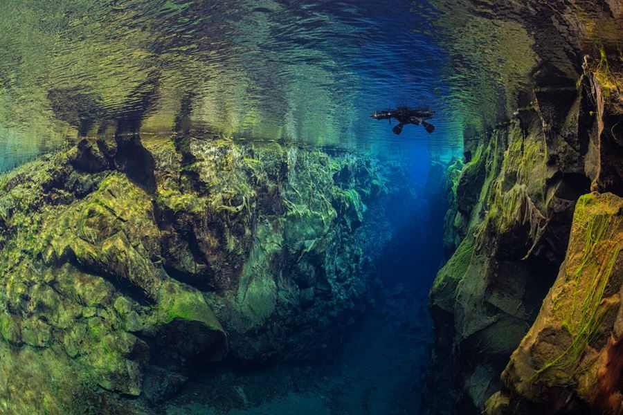 Silfra is located in Thingvellir National Park, a UNESCO World Heritage Site. The fissure opened after a powerful earthquake in 1789, tearing the land apart where the North American and Eurasian tectonic plates meet. Since then, the plates have continued to drift away from each other at a rate of about 0.79 inches (2 centimeters) per year.