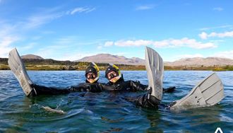 It is a magical experience. When snorkeling you will be wearing a dry suit, hood, and gloves made of neoprene, along with fins, mask, and snorkel. This equipment will make it not only possible but as well very enjoyable to stay in the water despite the cold temperature. Tripadvisor recently rated Snorkeling at Silfra as one of the Top 5 travel experiences in the world.