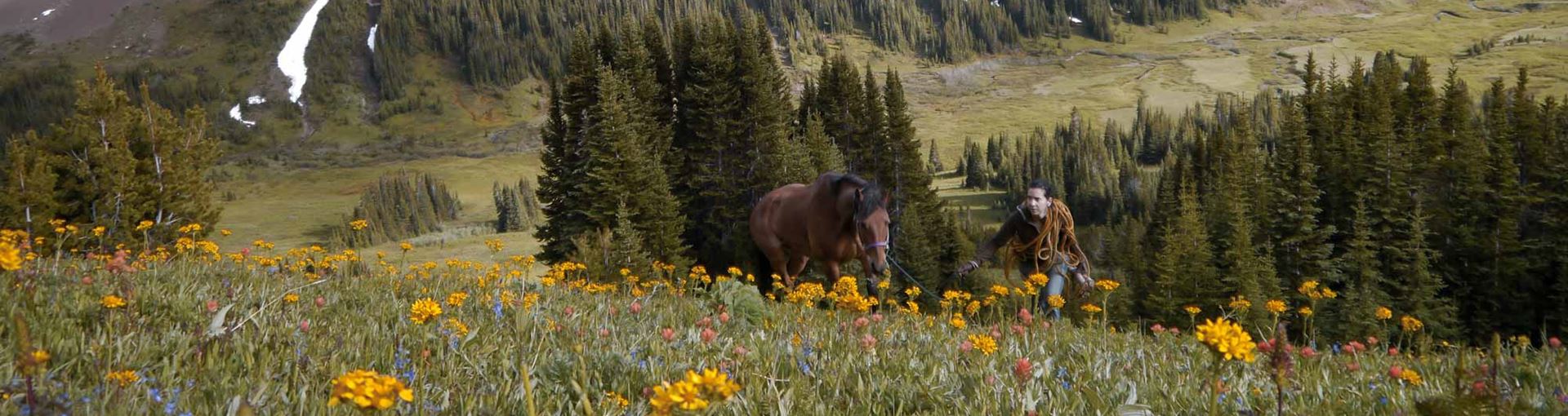 Day 2: Early next morning bring in your horses, saddle your riding horse, learn to pack the pack horses then ride out to camp. Scout for wildlife at prime spots along the way. Unsaddle and stake your horses in the wildflower meadows, cook dinner over the campfire and enjoy the night in your wall tent, allowing you to stay close to nature throughout the trip. Overnight at the camp.