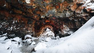 We then head out of the city and travel out to Raufarhólshellir Lava Tube. We wander into the dark depths of the Raufarhólshellir lava cave, which was carved by volcanic activity over 5,200 years ago.